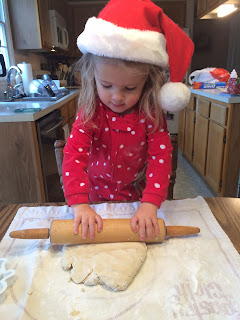 - Christmas isn't complete without sugar cookies. Addie loves to help and of course loves to taste test as well!
